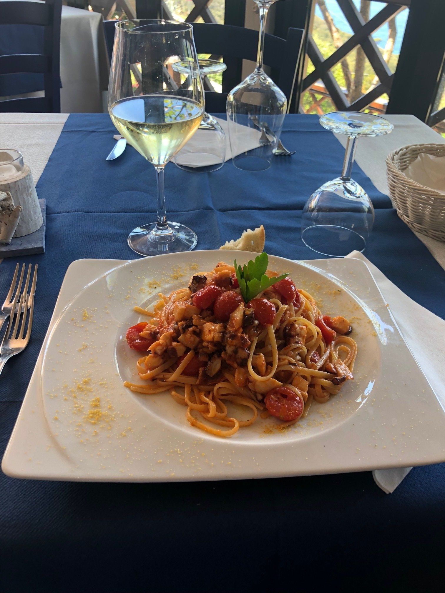 Non manca un’accurata selezione di vini pregiati italiani, sardi ed elbani, buonissimi dolci fatti in casa e la possibilità di gustare ottime pizze cotte nel forno a legna.